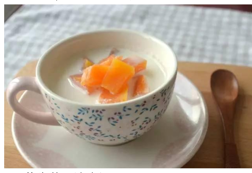 3. 混合享用: 将牛奶加热至温热(无需煮沸),倒入蒸好的木瓜中,搅拌均匀即可。