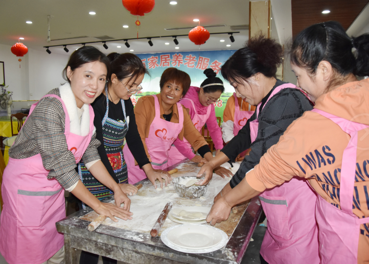 组织并筹备了一个假期,今天早上八点半,大家带着自己准备的莱阳梨、八宝粥、牛奶、麦片,各种水果等,在我们的美女领导葛经理带领下,我们家的众多大姐浩浩荡荡的来到了万家居敬老院,陪老人们聊天,询问老人的身体状况,并为敬老院的老人们包饺子,和他们分享蛋糕,陪老人们度过一个充实的重阳节。