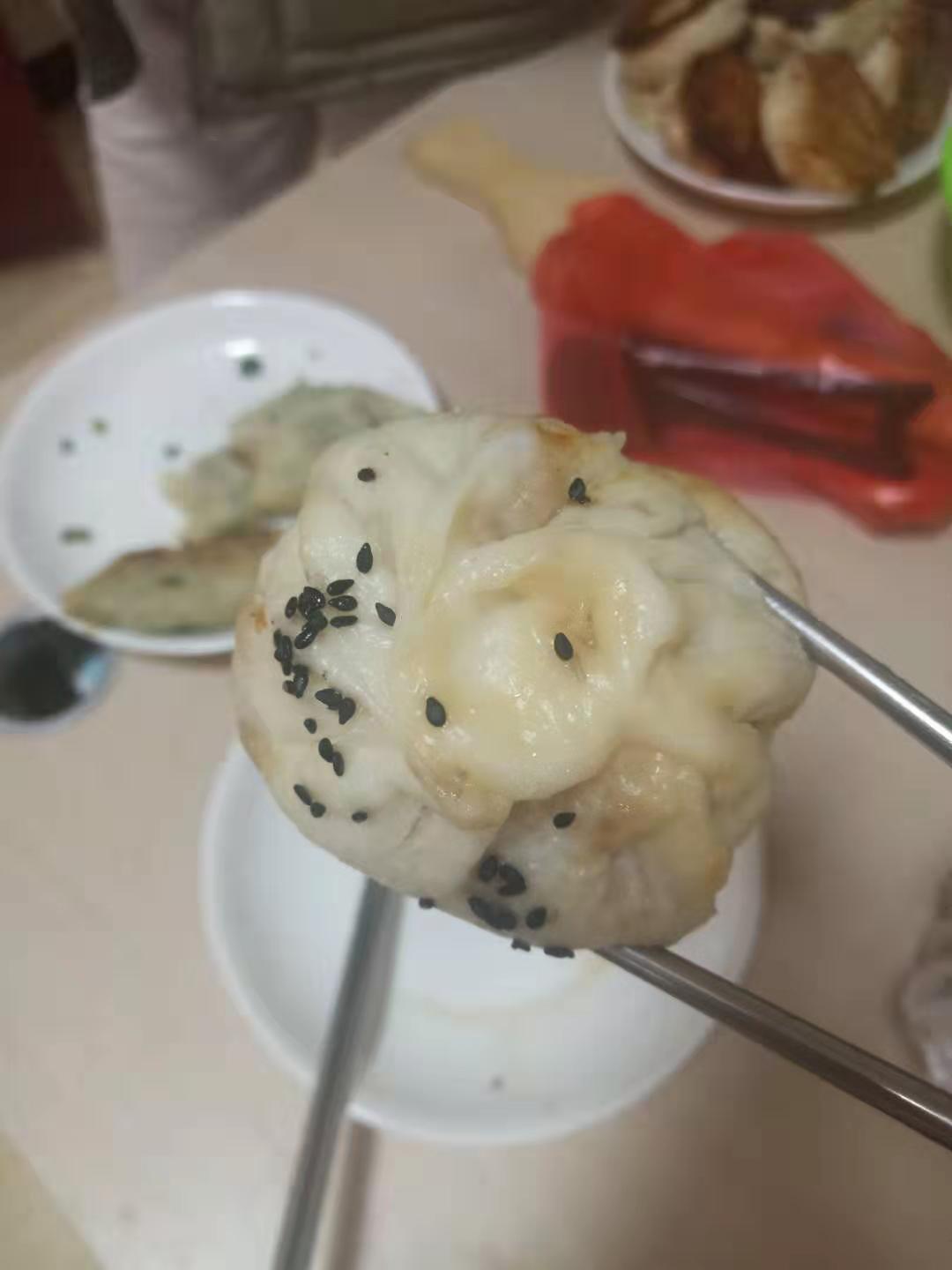不过还好,我回来的还算及时,也跟着学了揉面、擀皮,包包,知道了和面要软,揉面要轻,包子要提着来等等小窍门。当然最最重要的是终于等到开锅出炉了,我先尝了一个白菜的,又一个萝卜的、三鲜的。。。。。。路过娟姐,娟姐悄悄的跟我说锅里还给我藏了一个芹菜的。。。一不小心就吃撑了