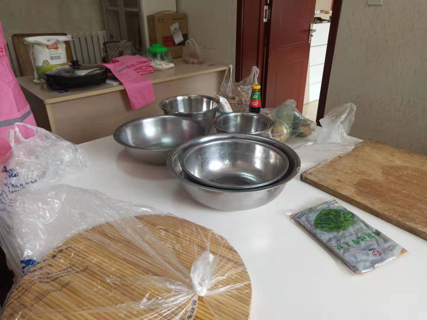 从前天开始领导和大姐们就开始准备了,今天一到公司就看到厨房里堆了一袋面粉、一袋鸡蛋,还有面板、面盆、擀面杖等用具,一会大姐们还陆陆续续的带来了韭菜、芸豆、胡萝卜、青萝卜、芹菜,土豪的周经理还送来了猪肉、大虾。