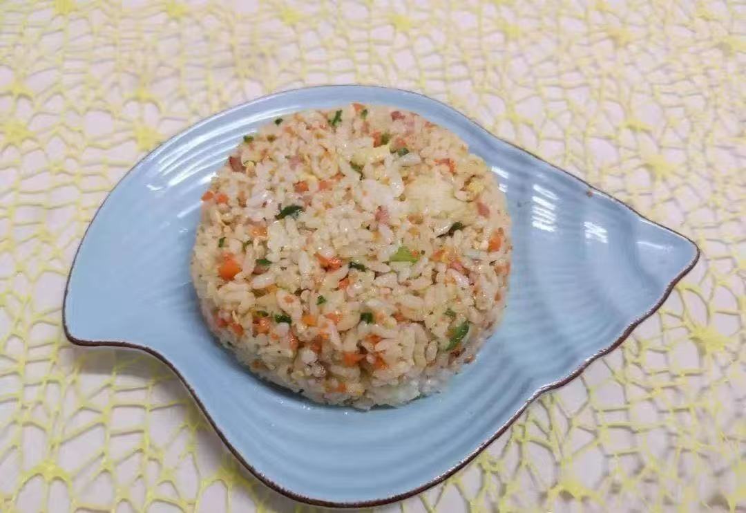 - 做法:胡萝卜切丁;菠菜切碎;鸡蛋炒散。另起锅爆香葱末,加入米饭、胡萝卜、菠菜、鸡蛋翻炒调味即可。