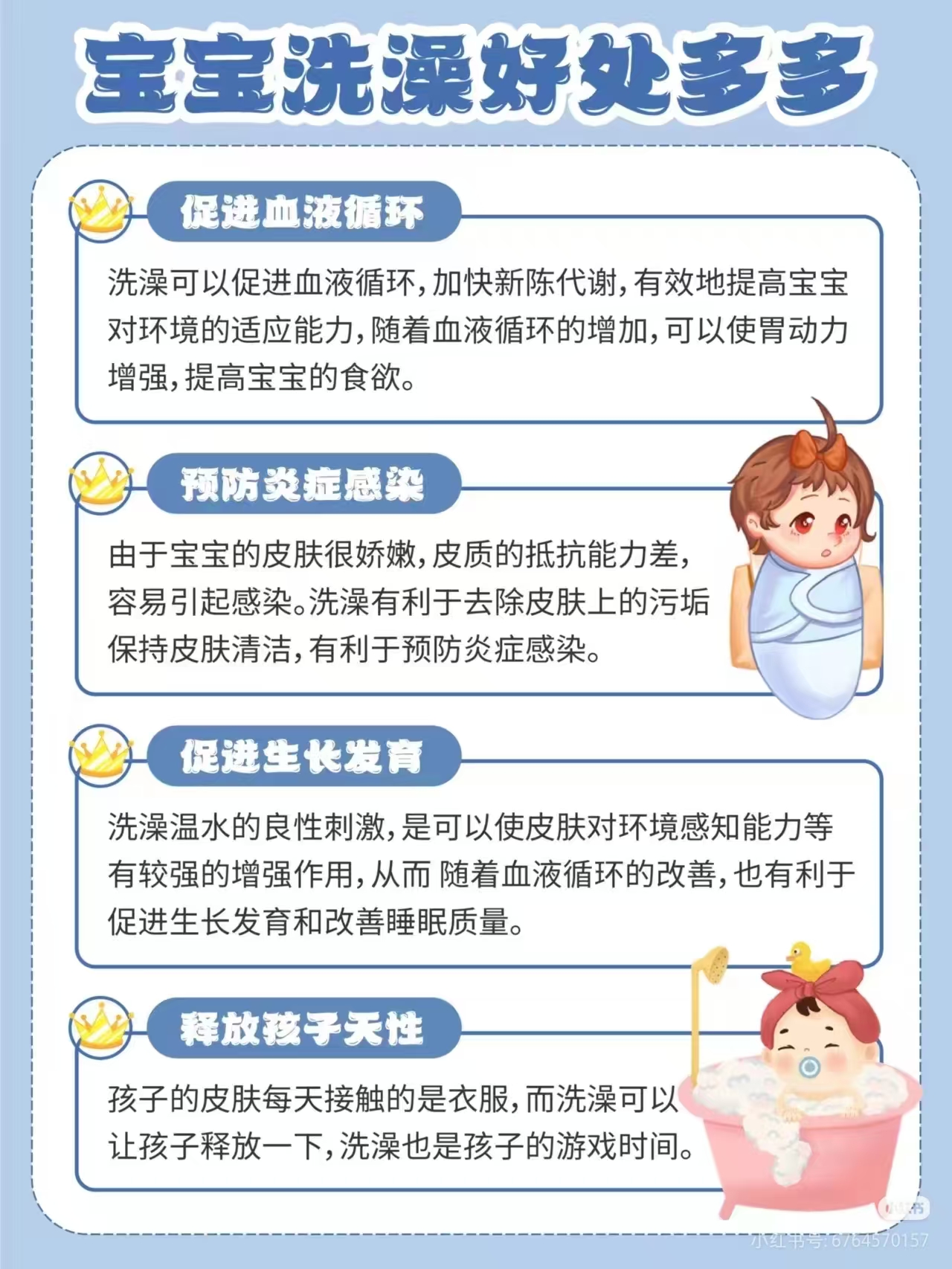 控制时长:新生儿洗澡时间不宜过长,5-10分钟即可。